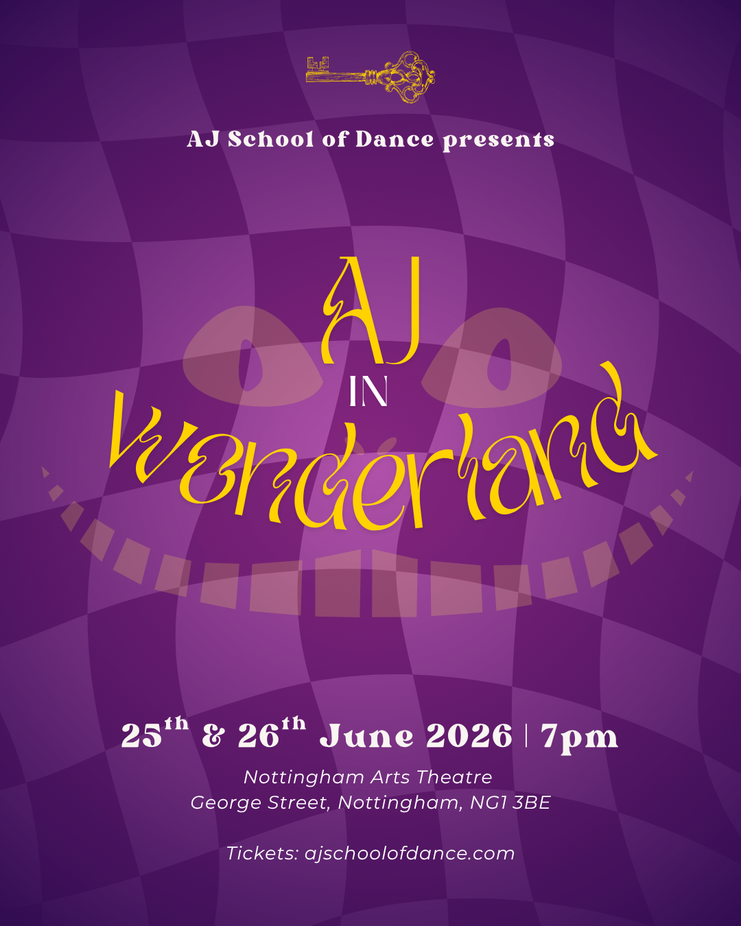 I am thrilled to open registration for our upcoming event, "AJ in WONDERLAND." This unforgettable show invites our dancers to journey through a world of vibrant characters, whimsical adventures, and imaginative storytelling—all told through movement, music, and creativity. From curious encounters to lively, high-energy moments, “AJ in Wonderland” is a production your child will be thrilled to be part of and one your family won’t want to miss. We can’t wait to guide our dancers down the rabbit hole and onto a stage filled with wonder!